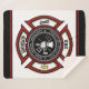 Departamento de Bombeiros NOME ADD Crachá Bombeiro Bombeiro - Emblem com Capacete e Ax. Personalize com seu nome, número de estação/departamento e local.