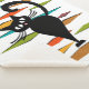 Ilustração colorida do estilo de Meio século abstrato com gato preto e decoração colorida de rombos em fundo branco