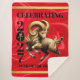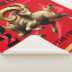 Eleve as suas experiências de entretenimento do Ano Novo Lunar de 2027 com este cobertor de flanela comemorativo, que apresenta a Cabra do Fogo dançando sobre um fundo de seda vermelha falsa luxuosa, bordeado por folha de ouro falsa, além da forma da letra chinesa para Cabra/Ovelha/Carneiro renderizada em folha de ouro falsa, no lugar do zero em 2027.