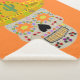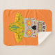 Este maravilhoso cobertor de xerpa fleece apresenta uma imagem design gráfica de um Dia Mexicano dos Mortos (Dia de los Muertos) inspirado no crânio. O crânio é uma cinza pálida e está vestindo um sombrero amarelo. Ela tem dentes de ouro e girassóis mexicanos, também chamados de titonias em vez de olhos. O sombrero tem um cacto e está coberto por padrões de espiral bonito e pimentões-do-sul e vermelhos. O próprio crânio está coberto por flores bonito e coloridas de diferentes tipos.