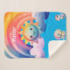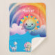 Este cobertor tem um belo arco-íris com nuvens infinitas que 3 dinossauros estão olhando para você também pode personalizá-lo com o nome do seu filho