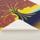 Árvore vermelha e dourada ao vento em fundo ensolarado. Criado com o uso do software AI.