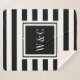 Cobertor Sherpa Elegante Monograma Moderno Listra Preta e Branca