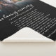 Este famoso cobertor memorial personalizado apresenta uma foto do seu ente querido como o ponto focal, com as palavras tocantes "na memória amorosa" escritas em um roteiro gracioso. Abaixo do nome, adicione um poema, citação, letra de música ou mensagem pessoal exibida em tipografia limpa e fácil de ler, oferecendo sentimentos reconfortantes para honrar um ente querido que passou. O fundo de gradiente suave melhora a foto, criando um design sereno e reflexivo que convida calor e memória. Este cobertor de tributo personalizado é uma maneira séria de celebrar a vida e a memória de alguém especial, oferecendo uma manutenção duradoura para a família e os amigos.