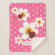 Lava-rosa personalizada e cobertor do nome das flores. Bonito cobertor de nomes personalizado, de cor rosa, com pregos vermelhos brilhantes / pássaros-bravos e flores gráficas brancas e amarelas. Faz um único presente personalizado de aniversário ou celebração de meninas. Personalize com seu próprio nome de garotas, lendo Bethany. Ideal para viajar e manter-se quente na noite de inverno. © Arte gráfica original e design exclusivamente criado por Sarah Trett para www.mylittleeden.com