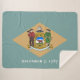 Esta design apresenta a bandeira estadual de Delaware, que é um estado na região Médio-Atlântico dos Estados Unidos da América. Delaware faz fronteira com Maryland a sul e oeste; Pensilvânia a norte; e Nova Jersey e o Oceano Atlântico a leste. O estado retira seu nome do rio Delaware, próximo. A cidade de Dover é a capital de Delaware. Outras grandes cidades do Estado de Delaware incluem Wilmington, Newark, Middletown, Smyrna, Milford, Seaford, Georgetown, Millsboro, Elsmere, New Castle, Clayton, Laurel, Harrington, Camden e Lewes. Um residente de Delaware é conhecido como Delawarean.