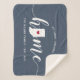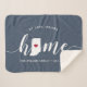 Mostre algum orgulho do estado doméstico com este cobertor giro azul de arremesso que apresenta "home" em letras brancas de escrita de caligrafia com um mapa da silhueta do estado de Indiana em pé para a letra "O". Um dentro de ilustração do coração vermelho no mapa do estado completa o design; você pode mudar a posição do coração para sua cidade natal abrindo a ferramenta design e arrastando a forma do coração para seu lugar favorito. Personalize com a sua cidade natal, o nome da família e o ano estabelecidos para criar um presente perfeito e memorável de inauguração ou adição à sua nova casa.