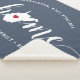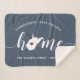 Mostre algum orgulho do estado doméstico com este cobertor giro azul de arremesso que apresenta "casa" em letras brancas de escrita de caligrafia com um mapa da silhueta do estado de West Virginia em pé para a letra "O". Um dentro de ilustração do coração vermelho no mapa do estado completa o design; você pode mudar a posição do coração para sua cidade natal abrindo a ferramenta design e arrastando a forma do coração para seu lugar favorito. Personalize com a sua cidade natal, o nome da família e o ano estabelecidos para criar um presente perfeito e memorável de inauguração ou adição à sua nova casa.