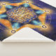 Arte digital em mesmerização que intricadamente tece os elementos intemporais da geometria sagrada, focando na Flor da Vida e no símbolo Merkaba. No coração da composição está a Flor da Vida, um padrão complexo, porém harmonioso, de círculos sobrepostos. Este símbolo, muitas vezes visto como o projeto da criação, irradia com tons vibrantes de blues profundos e dourados etéreos, sugerindo o potencial e a interconectividade ilimitados de toda a vida. Interferido com a Flor da Vida está a Merkaba, um tetraedro estrelado tridimensional que representa o equilíbrio entre os domínios físico e espiritual.