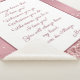 Este grande cobertor 60 x 80 com palavras de amor e uma borda de ouro-rosa é uma maneira excelente de dizer a sua filha o quanto a ama. Ela vai adorar embrulhar o teu amor e sentir o calor da tua presença, mesmo que não estejas perto dela. Que filha não quer saber que é profundamente amada e apreciada pela mãe/pai? Tudo é personalizável. Escolha a mensagem e a assinatura. Pegue um para cada uma de suas filhas. Eles vão realmente adorar!