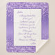 Este grande cobertor 60 x 80 com palavras de amor e uma borda violeta é uma forma excelente de dizer a sua filha o quanto a ama. Ela vai adorar embrulhar o teu amor e sentir o calor da tua presença, mesmo que não estejas perto dela. Que filha não quer saber que é profundamente amada e apreciada pela mãe/pai? Tudo é personalizável. Escolha a mensagem e a assinatura. Pegue um para cada uma de suas filhas. Eles vão realmente adorar!