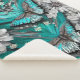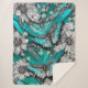Cobertor Sherpa Floral Teal Silver Butterflies Nome Personalizado