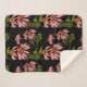 Cobertor Sherpa flores cor-de-rosa sobre fundo preto