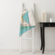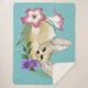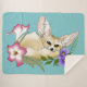 Uma raposa de fenn fofa enrolada com flores num pano de fundo azul