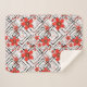 Cobertor Sherpa Flores vermelhas em fundo branco e preto.