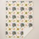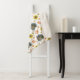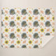 Um padrão aquoso de perus de cinza azul, girassóis e bolotas ouros, corações e folhas cor de laranja contra fundo branco