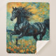 Um belo garanhão negro galopando pelas flores IA gerou arte baseada em minha própria fotografia a cavalo usando os estilos de alguns pintores famosos da história no prompt.