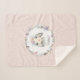 Um adorável cobertor de sherpa fofinho projetado especialmente para uma menina em um padrão de folhas delicado e cor-de-rosa pastel com um filhote fofo vestindo flores cor-de-rosa pastel e roxas na cabeça. Personalize com o nome do seu filho para um item de viveiro personalizado. Este cobertor faz um maravilhoso presente de chá de fraldas e está disponível em três tamanhos diferentes (mostrados aqui em tamanho pequeno).