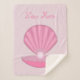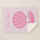 Este fantástico cobertor do velo sherpa apresenta uma bonito casca rosa aberta com uma pérola cor-de-rosa pálida sentada dentro num fundo cintilante. Um design excelente para celebrar uma menina. Há texto personalizado para que você possa personalizar este design com uma mensagem.