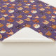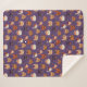 Folheto de tema divertido e branco do halloween com ilustração desenhada à mão de gatos em figurinos. O fundo é roxo.