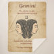 Description: Celebrate Gemini’s lively mind and dual spirit with this parchment-style zodiac blanket. Featuring wonderful affirmations it honors Gemini’s communicative and intellectual nature. Ruled by Mercury and tied to the Air element, this cozy design is perfect for those born May 21 to June 20. Bring versatility, energy, and thoughtful decor to your life or surprise your favorite Gemini with a gift they’ll love.