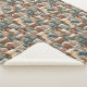 A hand drawn and painted town of gingerbread houses in muted red, orange, green and blue with touches of white. A charming Christmas season blanket. Look for the matching pillow.