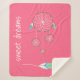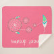 O cobertor de Sherpa, cor-de-rosa, de menina bonito, com gráficos de uma pena branca, verde, rosa e turquesa e uma caçadora de sonhos. O texto personalizado branco lê bons sonhos, e pode ser personalizado para ler o que você quer.