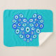 Um cobertor azul brilhante impresso com um coração de amor criado com símbolos de olhos gregos. Cobertor romântico, aconchegante e contemporâneo de Mau.