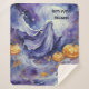 Encoste-se num cobertor tão mágico como a própria noite de Halloween! Este aconchegante apresenta um fantasma caprichoso a derivar através de um céu abarrotado de roxo, guiando um trio de abóboras sob o brilho da lua. É a mistura perfeita de assustador e doce — ideal para adicionar um toque de diversão do Dia das Bruxas ao seu sofá, cama ou anzol de leitura favorito. Você pode personalizar este cobertor com seu nome ou outro texto personalizado, ou deixá-lo vazio.