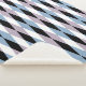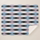 Um design de inspiração do século médio com um padrão de diamante de harlequin em azul, lilás poeirento, preto e branco.