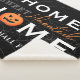 Bem-vindos aos seus convidados com este cobertor de sherpa do Halloween, divertido e divertido. O design de tipografia na moda apresenta a redação "Home Sweet Haunted Home" com texto personalizado para o nome da sua família e os acentos de uma assustadora abóbora-de-jack-lanterna, aranha solta e aranha-de-aranha. Inclui um esquema de cores preto, cinza, branco e laranja.
