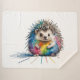 Ein freundlicher Igel in bunten Farben, eine kindliche Zeichnung eines Igels, mit Tusche und Kreide, gekleckst und geschmierte ist die Farben als Stil und Effekt des lustigen Bildes.