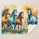This image shows a herd of colorful horses in the pasture, blending whimsical drawing and abstract art elements in a palette of complementary colors.