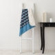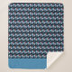 Design com padrão geométrico circular com um banco azul e espaço para adicionar iniciais ou outro texto personalizado. Dentro de cada círculo há outra intrincada design com uma flor estilizada de retalhos com 6 pétalas, cada uma com um padrão variado.