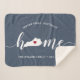 Mostre algum orgulho do estado doméstico com este cobertor giro azul de lançamento apresentando "casa" em letras brancas de escrita de caligrafia com um mapa da silhueta do estado de Kentucky em pé para a letra "O". Um dentro de ilustração do coração vermelho no mapa do estado completa o design; você pode mudar a posição do coração para sua cidade natal abrindo a ferramenta design e arrastando a forma do coração para seu lugar favorito. Personalize com a sua cidade natal, o nome da família e o ano estabelecidos para criar um presente perfeito e memorável de inauguração ou adição à sua nova casa.