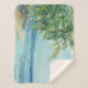 "Blue Coastal Lagoon" de Suzanne Wilkins. Possui uma praia serena com árvores tropicais.
