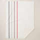 Este cobertor branco minimalista moderno apresenta linhas verticais finas em preto, cinza e vermelho. Excelente para quartos contemporâneos.