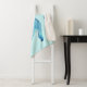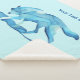Um lobo azul estilizado (Canis lupus) lança uma sombra enquanto atravessa o terreno nevado. Adicione seu próprio texto.