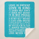 Our "Love Never Fails" (1 Corinthians 13) blanket is the perfect housewarming, wedding, or anniversary gift. This blanket is a wonderful addition to any bedroom or sofa.