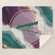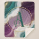 Soft flowing waves of teal and deep purple blend together with shimmering gold sparkles. A stylish abstract pattern with a modern and luxurious feel.