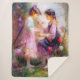 Uma pintura gerada por IA de duas meninas admirando flores em um jardim.