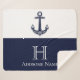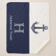 Cobertor Sherpa Marinho Náutico Azul Anchor Costeiro Monograma