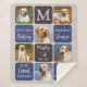 Celebre seu melhor amigo com uma manta personalizada de colagem de fotos de memorial de animal de estimação em um design moderno de bloco de cores azul clássico navy retrô, marrom legal e bege cinza. Esta manta exclusiva de lembrança de memorial de animal de estimação é o presente perfeito para você, familiares ou amigos para homenagear aqueles que são amados.