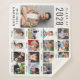 A graduação mantém o cobertor sherpa com 17 fotos de colagem do formando durante os anos escolares. Adicione suas legendas personalizadas em cada foto.
