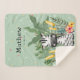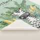 Bolinhas adoráveis no fundo com uma pequena zebra fofa em verde.