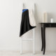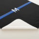 Este cobertor de sherpa de linha azul fina da polícia tem uma faixa azul horizontal sobre fundo preto e um monograma inicial em branco para você personalizar.