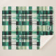 Este cobertor apresenta uma design xadrez ousada e moderna com camadas sobrepostas de tons verdes, pretos, brancos e de tons claros. O padrão combina linhas finas e grossas, dando a ele uma aparência contemporânea e geométrica. O monograma no fundo adiciona um toque personalizado, com as iniciais exibidas em um dentro de fonte limpo e minimalista com um quadrado bordado. Este monograma pode ser personalizado com qualquer conjunto de iniciais, fazer-o de um dom versátil e na moda ou peça de decoração. O interior da pelúcia adiciona calor e suavidade, ideal para se aconchegarem em um dia frio.