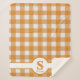 Cobertor Sherpa Monograma inicial Xadrez laranja e branca