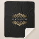Um elegante cobertor de xerpa preto e ouro floresce. Adicione seu nome entre o floral dourado floral na frente. Projetado para você pelo Blackberry Boulevard.