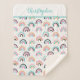Um cobertor fofo do arco-íris sherpa baby, um cobertor do tamanho do cobertor ou do tamanho do dois com as cores rosa, teal, laranja e preto. Personalize-o com o nome no topo. Faz um presente de chá de fraldas excelente para bebês. Também temos uma em cor-de-rosa para meninas.